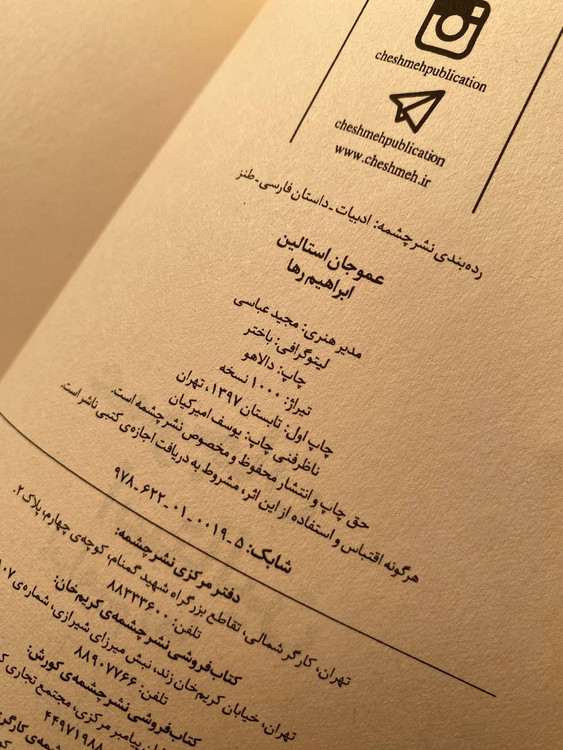 عمو جان استالین/ نوشته ابراهیم رها/ انتشارات چشمه / تعداد صفحه ۱۵۸/