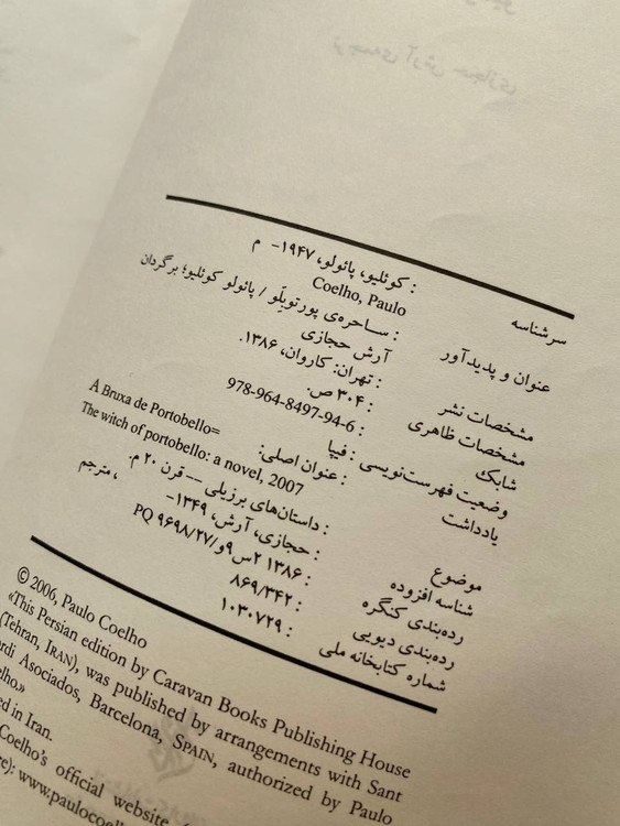 ساحره پورتوبلو/ نوشته پائولو کوئیلو/ ترجمه آرش حجازی/ نشر کاروان /چاپ ۱۳۸۷ /