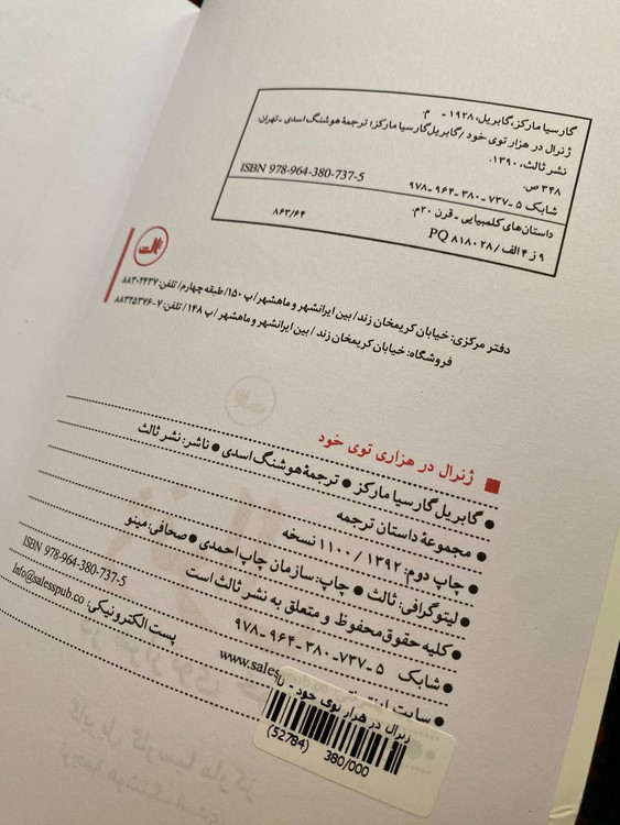 ژنرال در هزارتوی خود / نوشته گابریل گارسیا مارکز / ترجمه هوشنگ اسدی/ انتشارات ثالث/ چاپ دوم ۱۳۹۲/ جلد شومیز /کاغذ سفید/ تعداد صفحه ۳۴۵