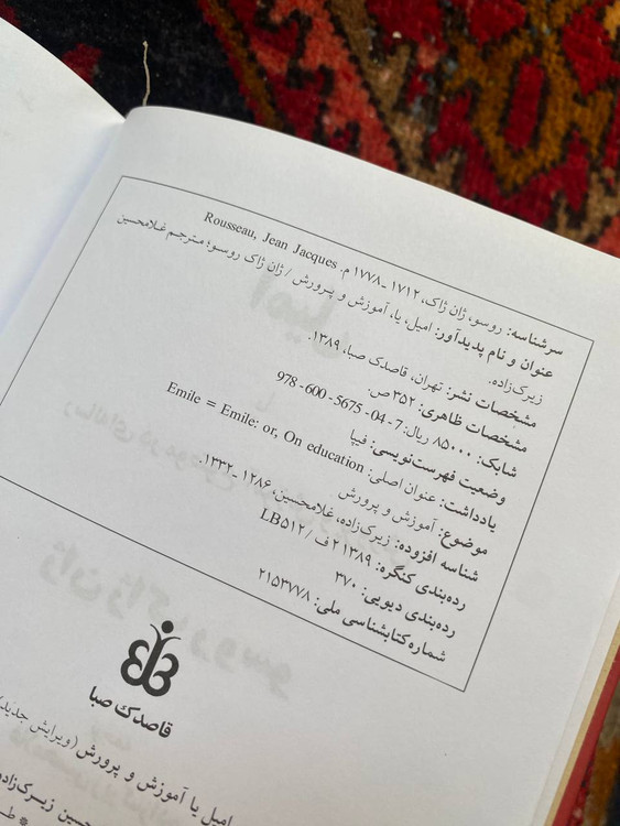 کتاب امیل نوشته ژان ژاک روسو ترجمه غلامحسین زیرکزاده انتشارات قاصدک صبا جلد گالینگور کاغذ سفید تعداد صفحه ۳۵۱