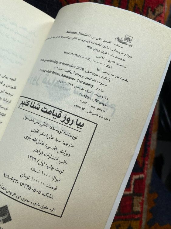 بیا روز قیامت شنا کنیم نوشته ناتالی سی اندرسون ترجمه علی اصغر تقوی انتشارات فراهنر چاپ اول ۱۳۹۹ جلد شومیز کاغذ بالک تعداد صفحه ۴۲۴