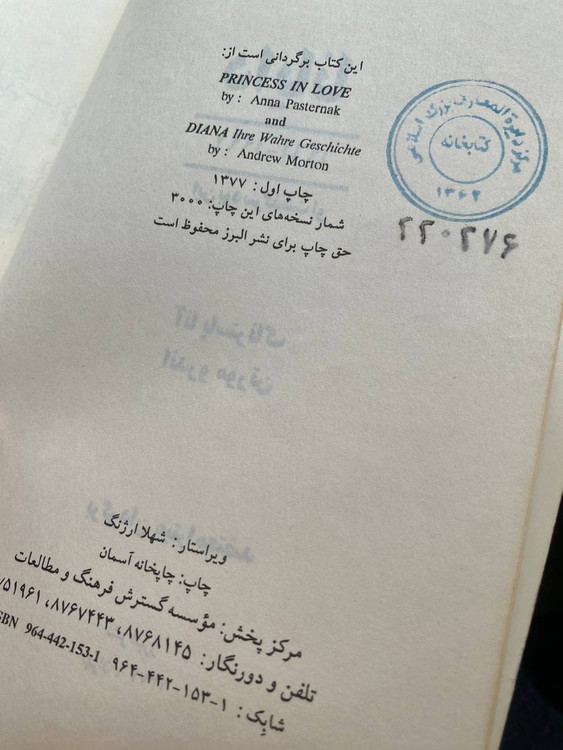 دایانا نوشته آنا پاسترناک و اندرو مورتن ترجمه میترا معتضد نشر البرز چاپ ۱۳۷۷ جلد شومیز تعداد صفحه ۴۹۵