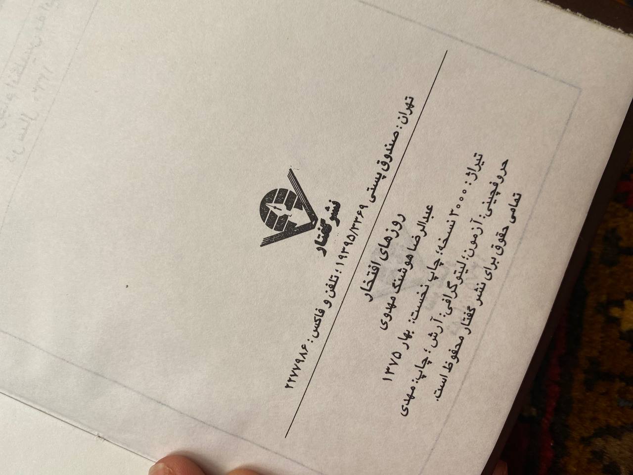 روزهای افتخار نوشته عبدالرضا هوشنگ مهدوی انتشارات گفتار چاپ ۱۳۷۵ جلد گالینگور کاغذ سفید تعداد تعداد صفحه ۳۶۵