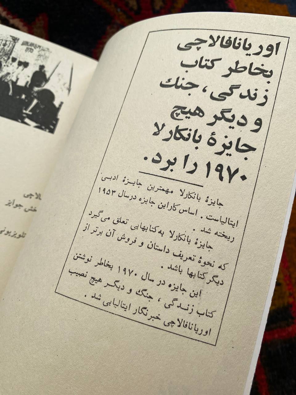 رمان زندگی، جنگ و دیگر هیچ، تشریحی زیبا و فوق العاده جذاب از اتفاقات یک سال از جنگ ویتنام است که اوریانا فالاچی، آن را به شکل داستان به رشته ی تحریر درآورده است. لازم به ذکر است که این نویسنده در خلال تهیه ی گزارش های جنگ، تیر خورد و بدون کمک در منطقه ای رها شد، اما به شکلی معجزه آسا از مرگ نجات یافت.